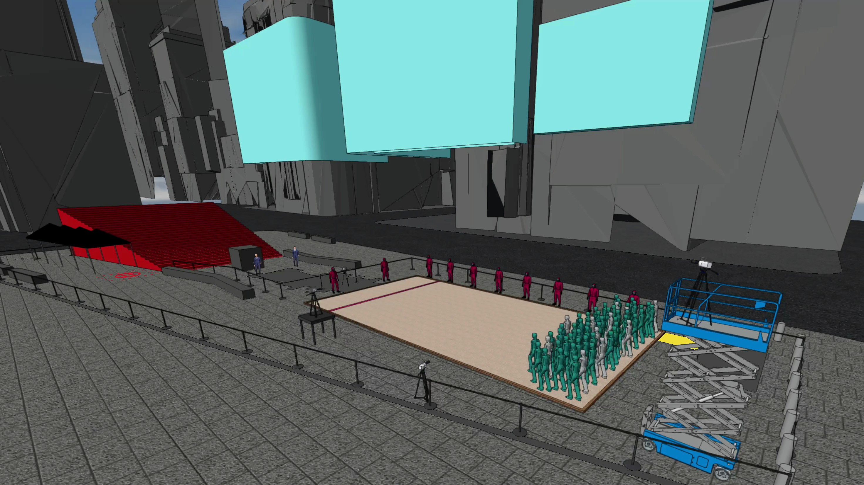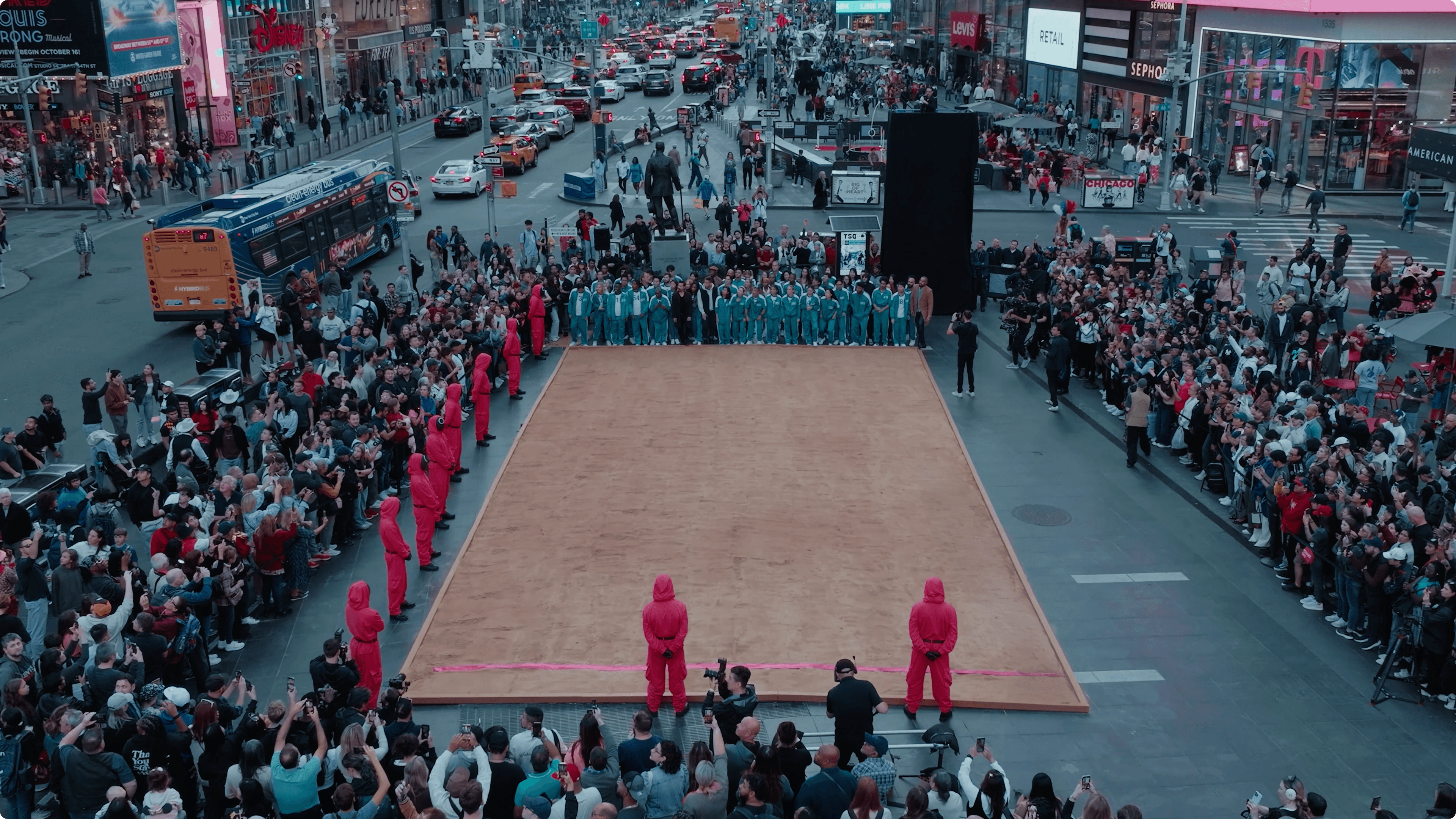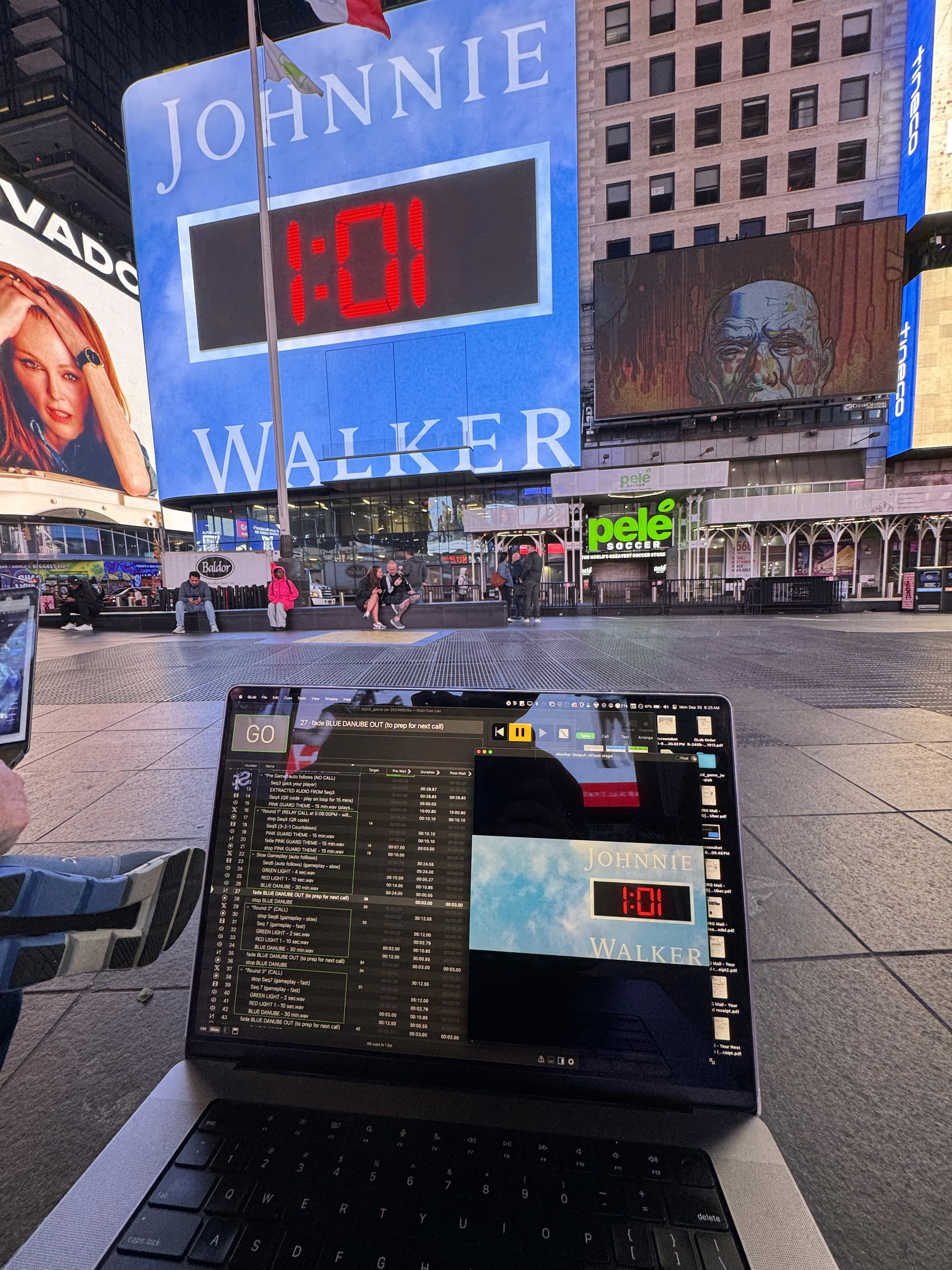 Having worked with Netflix on a Los Angeles activation for Squid Game S1, I was thrilled to bring Squid Game to my home in the Big Apple for S2. As technical director I designed the layout of the event in 3D using Vectorworks, satisfying all departments’ needs and working within hyper-specific requirements from the Time Square Alliance. My proudest achievement on this project was controlling the iconic TSX billboard, the highest resolution video screen in Times Square. I worked with the TSX team and the agency to build out an audiovisual Qlab show which I called live from a sophisticated video village on the ground in Times Square. The massive on-screen video elements synced with widespread audio playback to fuly immerse the 100+ actors and crowds of tourists in the gameplay.
