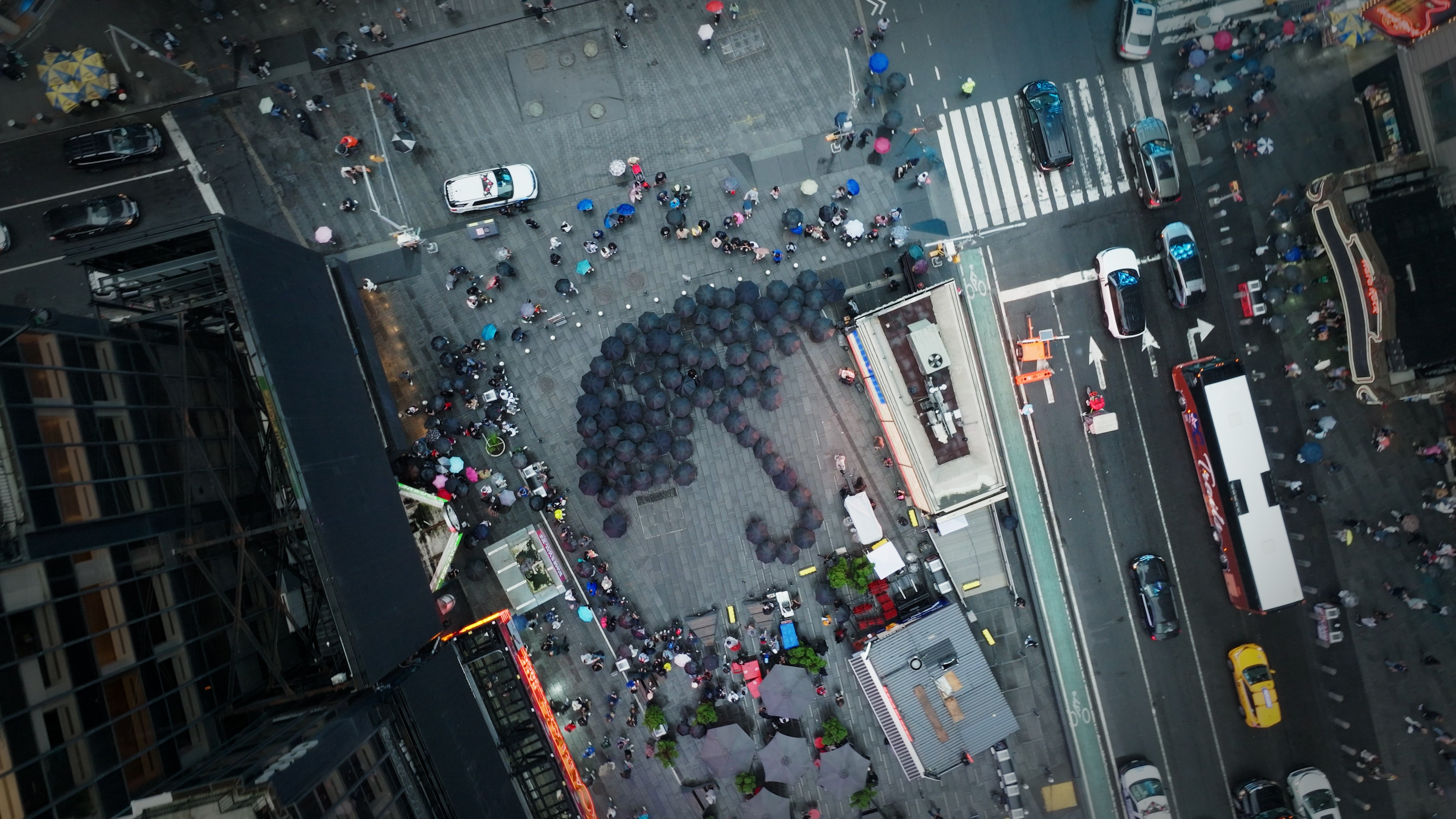With only 15 minutes of live Times Square billboards, we had to nail this shoot the first time - my kind of challenge. To achieve huge sweeping shots of the 100 dancers, I utilized a Technocrane and coordinated the first-ever NYPD/FAA-approved drone flight over people in Times Square. My dance background was essential in working with choreographer John Heginbotham to craft movement specifically for camera. My favorite puzzle was creating the Umbrella Academy logo from above using 100 umbrella-wielding performers in real time. I pre-visualized the moment in 3D using Vectorworks, which gave the entire team confidence and allowed us to map the complicated movement onto the real world on the shoot day with ease. I know Times Square inside and out, so even the rain couldn’t slow us down.